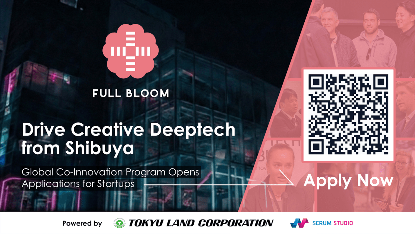 東急不動産株式会社とスクラムスタジオ株式会社が、渋谷サクラステージ内「SAKURA DEEPTECH SHIBUYA(以下「SDS」)」で運営する事業共創プログラムの第二期を「Full Bloom」と題し、スタートアップの募集を開始した。SDSは、マサチューセッツ工科大学(以下「MIT」)の教授陣を筆頭に世界トップクラスの産官学パートナーとともに、ディープテック分野のスタートアップ支援を行うグローバルなコミュニティ拠点だ。