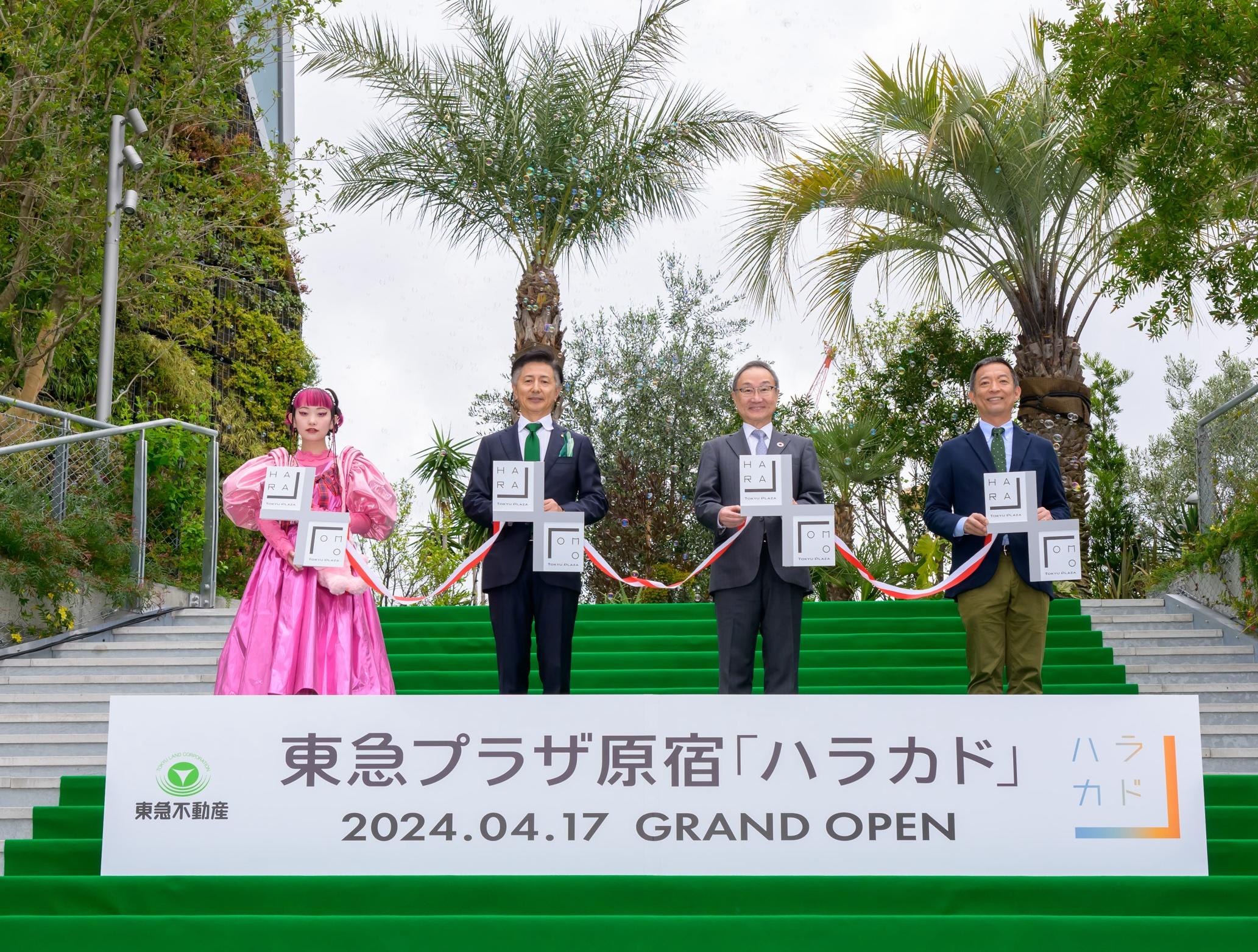 開業を記念して実施したオープニングセレモニーでは、東急不動産株式会社 代表取締役社長 星野浩明氏が「今日は「ハラカド」を開業し、「東急プラザ表参道原宿」は「東急プラザ表参道「オモカド」」と改称しております。これらの施設が一体となり、このエリア全体で新しいカルチャーを創造・発信していく力をさらに強めてくれるものと期待しています」と挨拶した。続いて、本物件共同事業者である東京地下鉄株式会社 代表取締役社長 山村明義氏および渋谷区長の長谷部健氏が、「ハラカド」開業への期待の言葉と祝辞を語った。